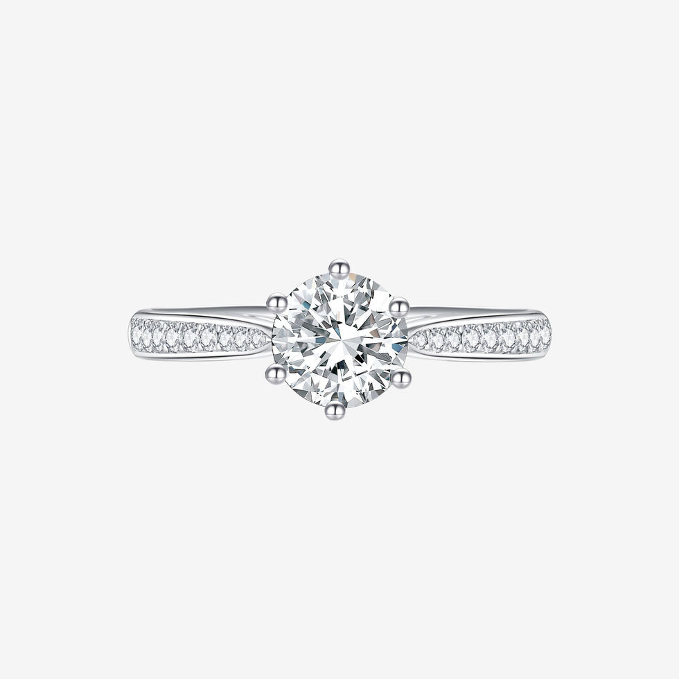 LKR014 6 Prongs Round Diamond Pave Engagement Ring